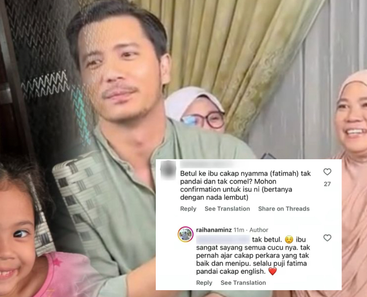 Pada masa sama, Raihan turut memaklumkan ibunya sangat menyayangi semua cucunya selain kerap memuji kepetahan Fatima berbahasa Inggeris.