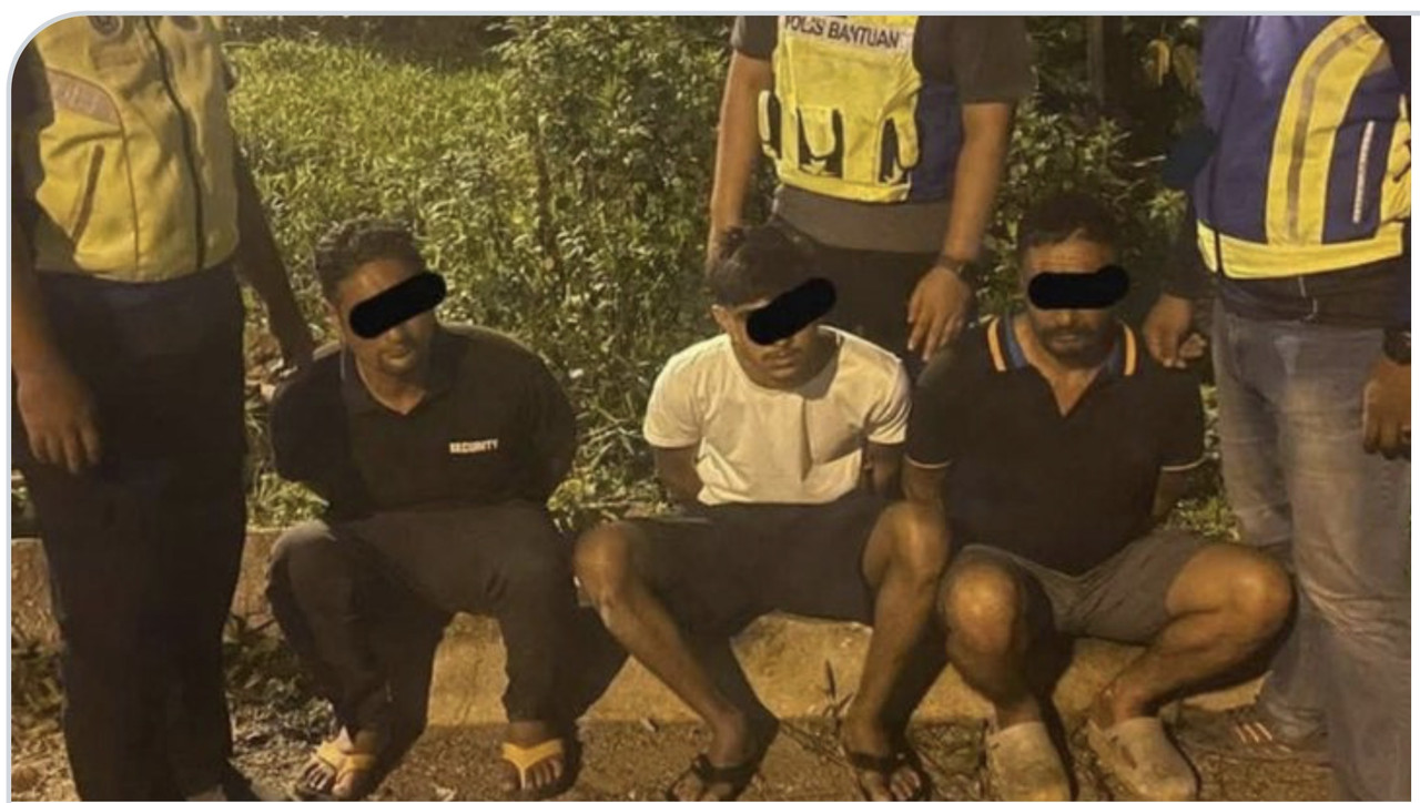 TIGA lelaki warga asing yang ditahan menceroboh kawasan landasan kereta api serta memotong kabel. FOTO Ihsan KTMB